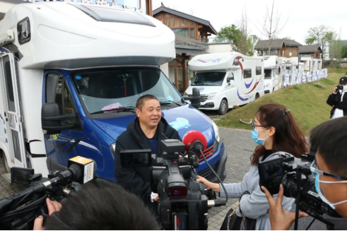 来自四川遂宁的杨叔,作为凤凰房车车友代表接受了电视台的采访,在他看来:“房车生活就是要'耍',只有耍起来了,才能深刻感受到房车生活的的美好,短途旅行可以开着到处钓鱼、野营,长途旅行可以去318、新疆体验自然风情。”