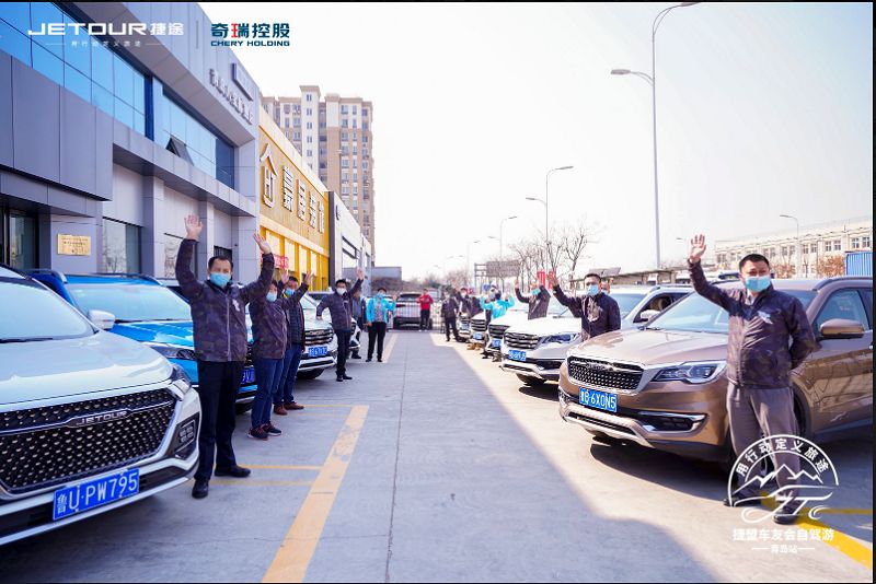 车辆陆续准备完毕,捷途家人们也都换上统一的服装,列队准备出发。