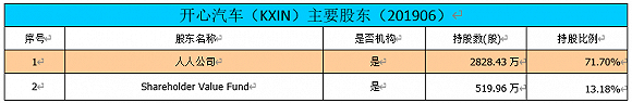 截至目前,开心汽车的第一大股东是人人公司(RENN),持有2828.43万股,持股比例高达71.70%。