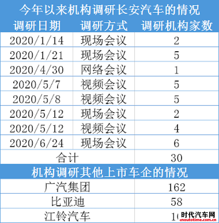 而据时代财经统计今年以来机构调研上市车企的情况获悉,在12家A股上市车企中,有4家车企受到机构的青睐,广汽集团、比亚迪、长安汽车、江铃汽车今年接待的机构调研数量分别为162、58、30和10家。显然,今年以来,长安汽车在A股市场的受关注度不小。