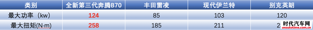 可以看到,在对比中,全新第三代奔腾B70显然和其他品牌拉开了差距。无论是在轴距上,还是车身长度上,都有着明显的区隔。全新第三代奔腾B70 在轴距上达到了2800mm,这种表现再“跳跳脚”甚至可以够到B级车的门槛,这对用户的实际驾乘体验绝对是颠覆性的体验。在对比中,无论是英朗、雷凌、还是最新换代的伊兰特,在空间潜力上均不如全新第三代奔腾B70。可见这种造车上的思想桎梏,依然影响着合资车企的决策。
