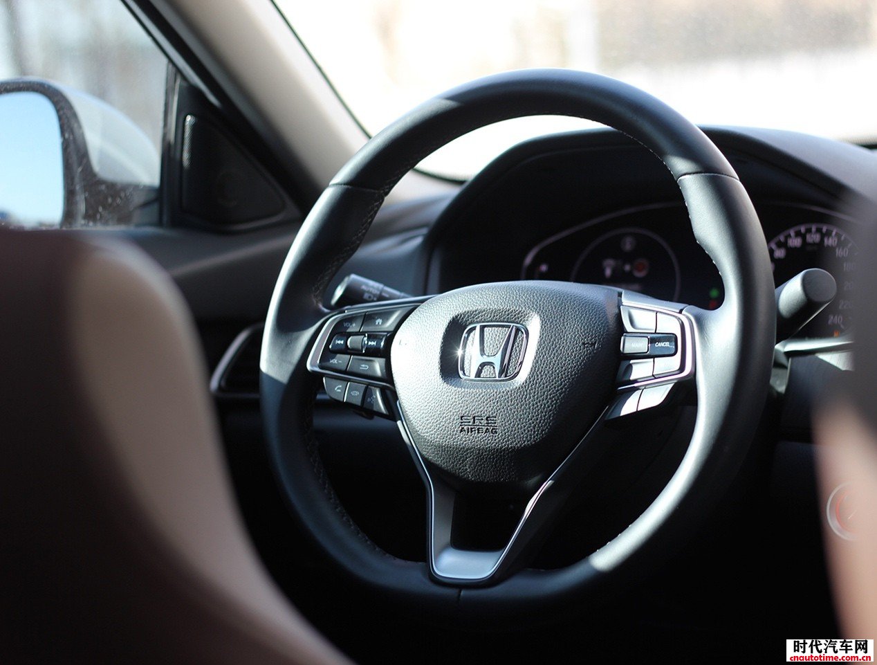 在转速攀高的同时,方向盘手感也会瞬间收紧,劲道的阻尼感让方向盘很沉,进而被动的缩小了旷量,这更像是游走于机械助力和电控助力之间的阻尼标定,能在三四十公里时速下就将运动味铺展开来,这可是雅阁没有的。